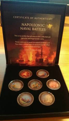 NAPOLENIC NAVAL BATTLES - 10 pcs BEAUTIFUL COLORIZED coins - in PRESENTATION BOX