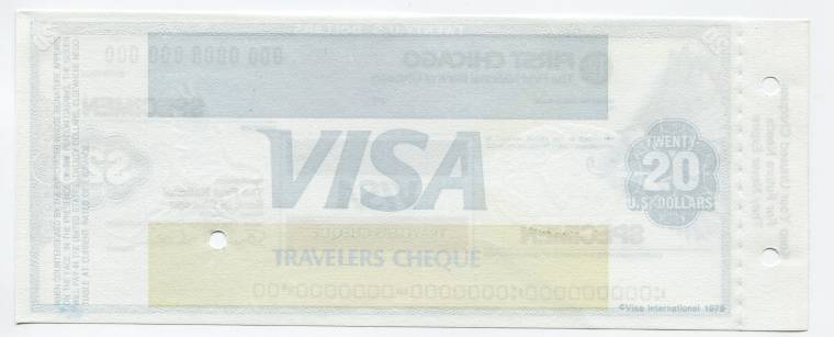 USA - ORIGINAL SPECIMEN TRAVELLERS CHEQUE/CHECK - FIRST CHICAGO BANK - $20 - UNCIRCULATED MINT CONDITION , Circa 1980