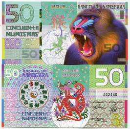 Banco De Kamberra 50 Numismas - 2016 Year of the Monkey - Fantasy Issue Polymer Note