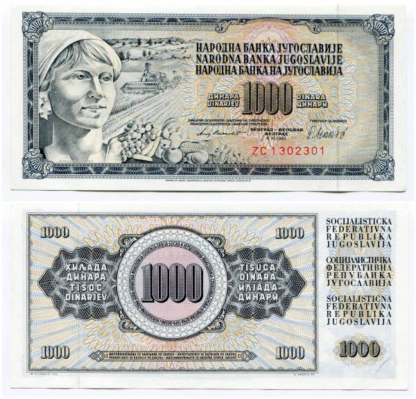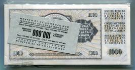 1981 1000 Dinaras YUGOSLAVIA Bank Note - UNC P92ZA Replacement Note 1/2 Bundle x 50 Notes - Scarce