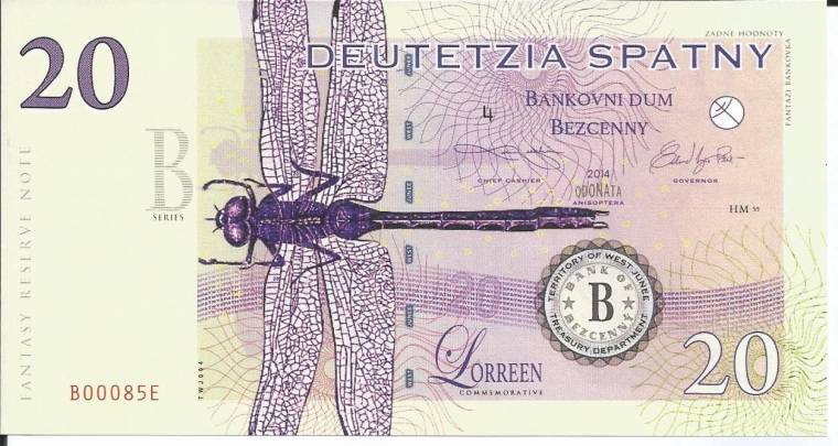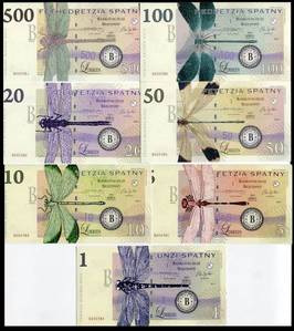 Territory of West Junee,Bank of Bezcenny,Complete Matching Serial Numbers Set,1-5-10-20-50-100-500 Spatny,2014, Serie B