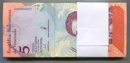Venezuela PNEW 2018 5 Bolivares Soberano UNC x 100 Sequential Banknotes 1 Bundle