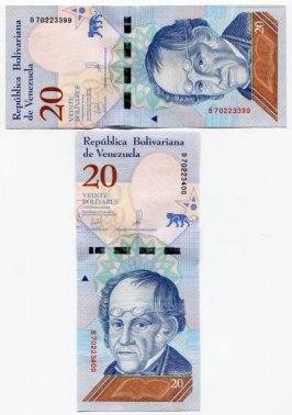 Venezuela PNEW 2018 20 Bolivares Soberano UNC x 100 Sequential Banknotes 1 Bundle