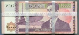 As shown, from original strapped bundle from the Central Bank of Iraq of GENUINE Saddam Hussein year 2002, 10000 Dinar Banknotes - as shown in the scans, these notes have out of many security features present, the top and bottom red security lines running OVER the right hand side silver counterfoil. This is only found in authentic bundles not most of the fake bundles on the market - I am an IBNS member and only deal in authentic notes