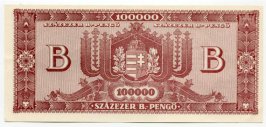 HUNGARY 1946 100000 B PENGO CURRENCY INFLATION NOTE = 100 QUADRILLION PENGO in Uncirculated/XF Condition (some very slight edge marks from handling - see scans to judge for yourself) - P133