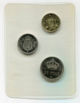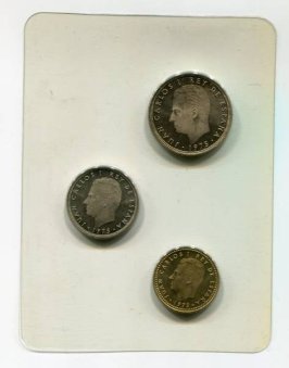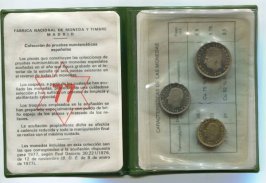 Spain year 1975 set of 3 Proof Peseta Coins in Folder Madrid Pruebas Numismatic