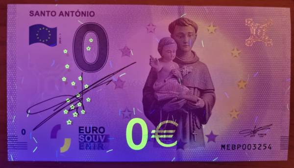 SAINT ANTHONY PATRON SAINT of LISBON PORTUGAL 2019 EDITION 0 Euro Souvenir Banknote - Series 2025-5 -  Hand Signed by the creator Richard Faille in person for me - guaranteed 100% authentic (see scans)