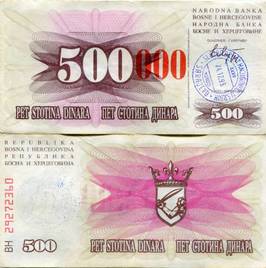 BOSNIA - RED 500(000) DINARA 1993 XF STAMP - SARAJEVO x 100 Pieces - Dealer Lot